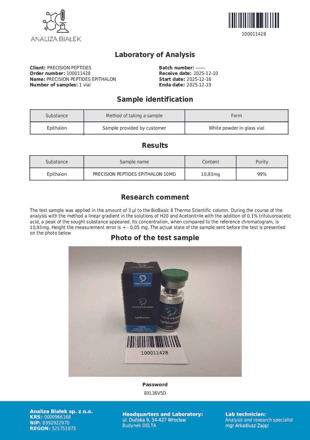 This product is supplied strictly for laboratory research purposes only. It is not intended for human consumption, medical, veterinary or household use.