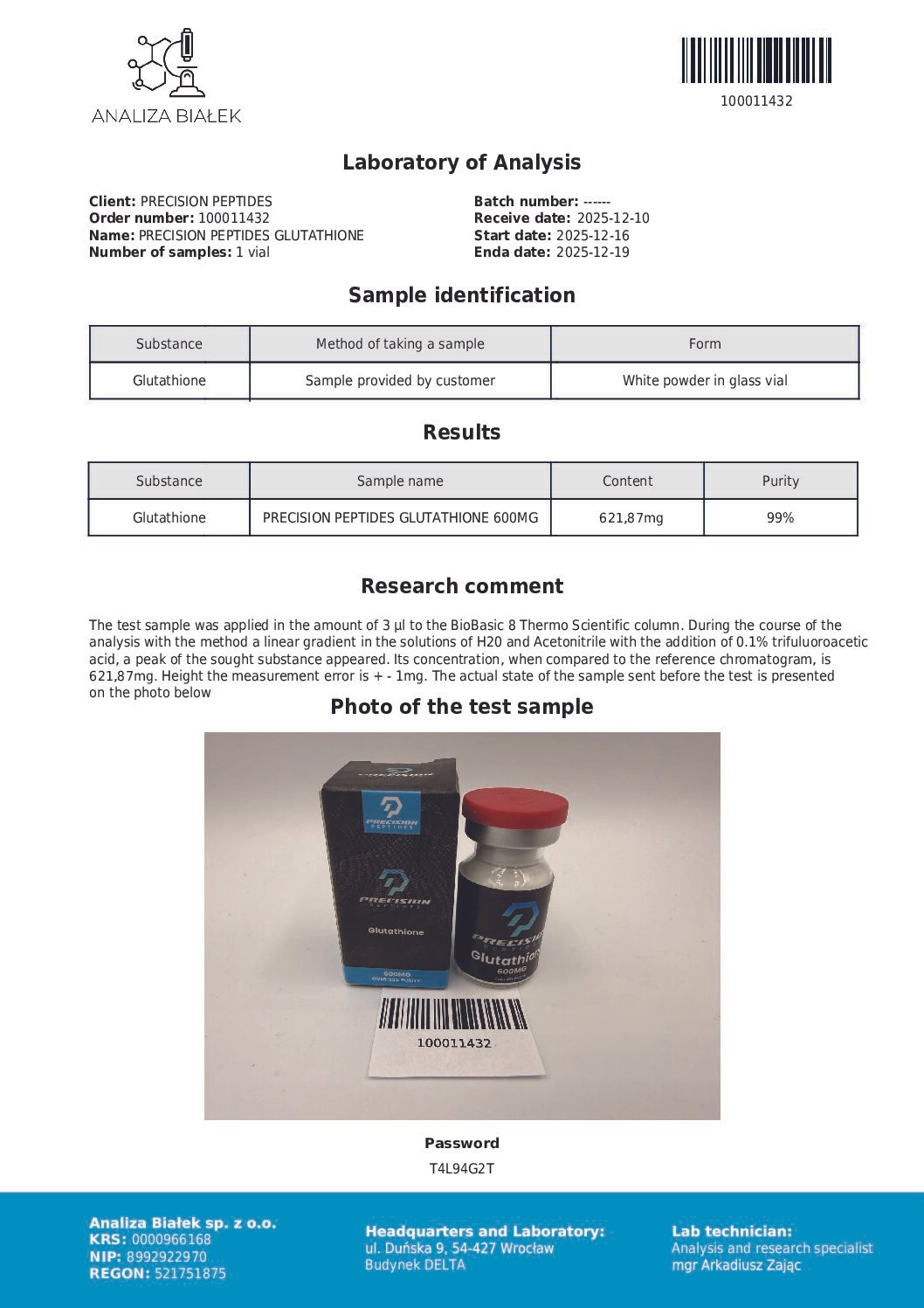Glutathione research compound by Precision PeptidesGlutathione (600mg)