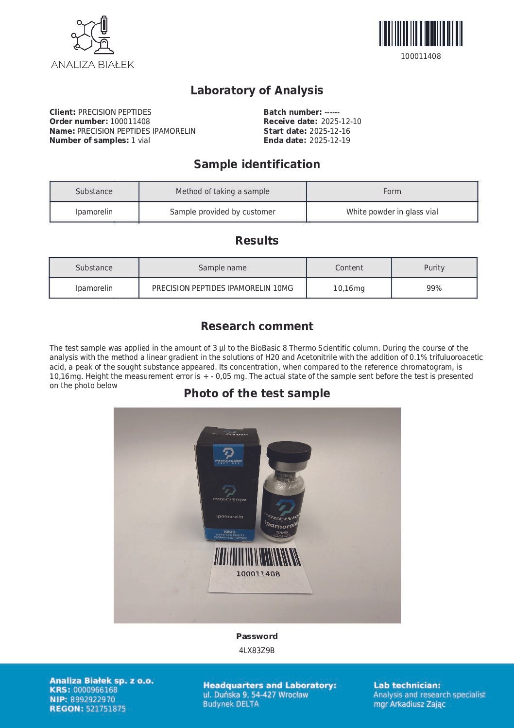 Ipamorelin research compound by Precision PeptidesIpamorelin (10mg)